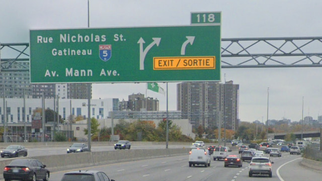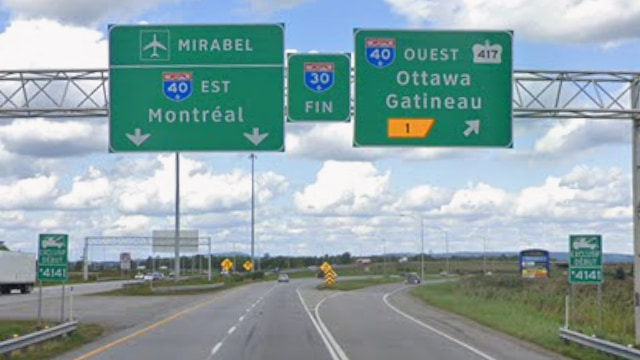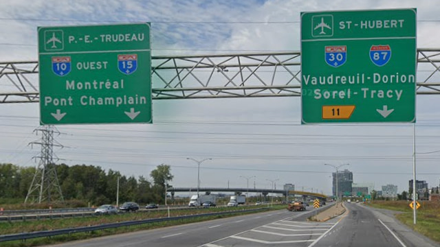 Once in Canada, this route avoids Montreal but requires paying a toll. Check to make sure Google Maps navigation is doing this (e.g. uncheck "avoid tolls"), or is at least going around Montreal.